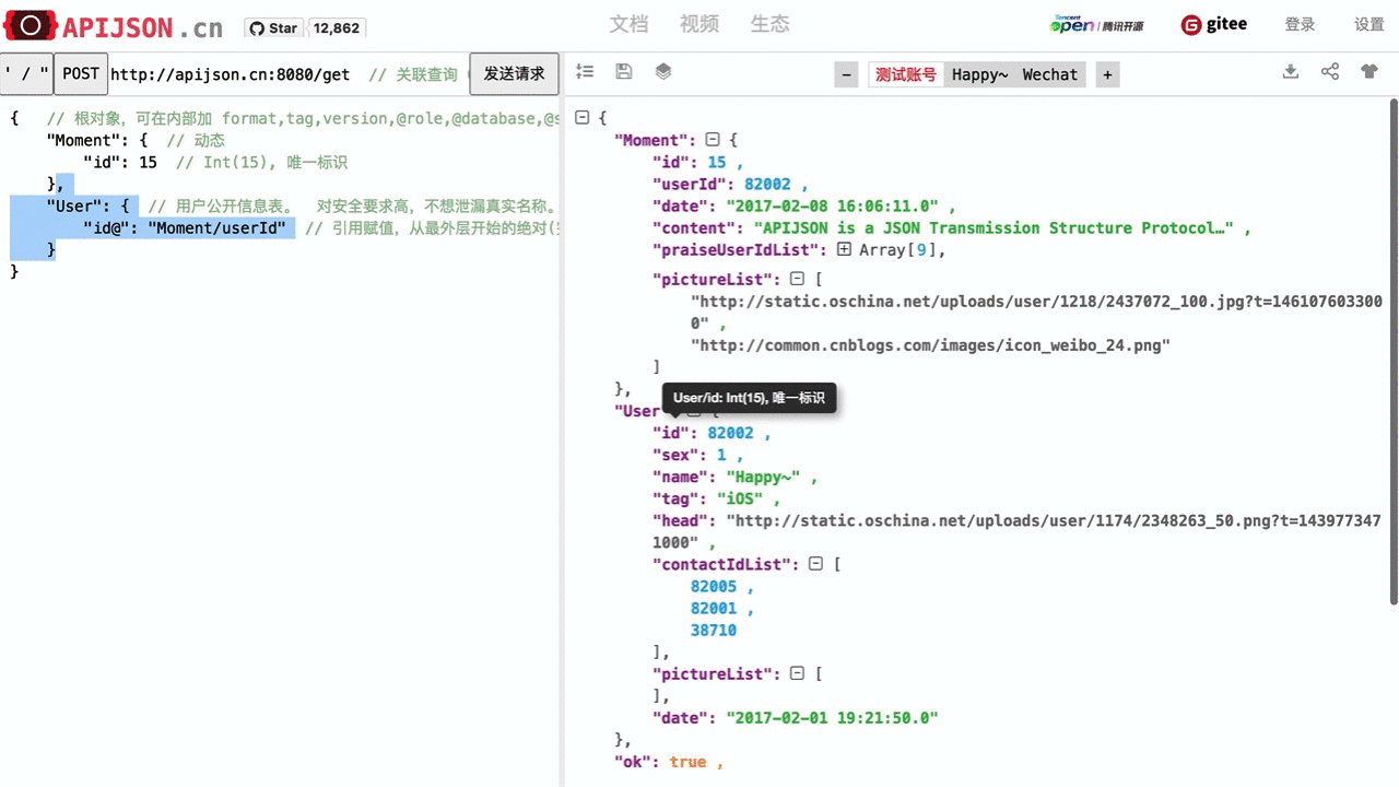 APIJSON: query multi related tables, flexible data structures. APIAuto: multi test accounts, easily share test cases